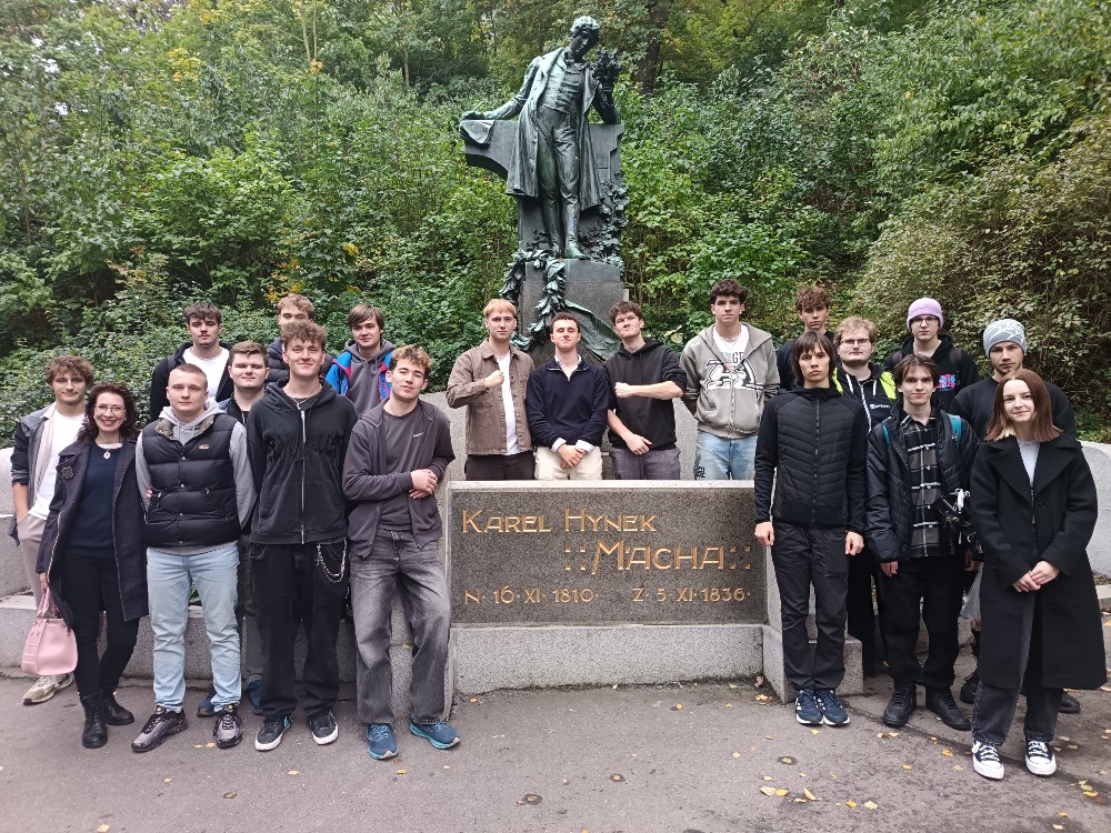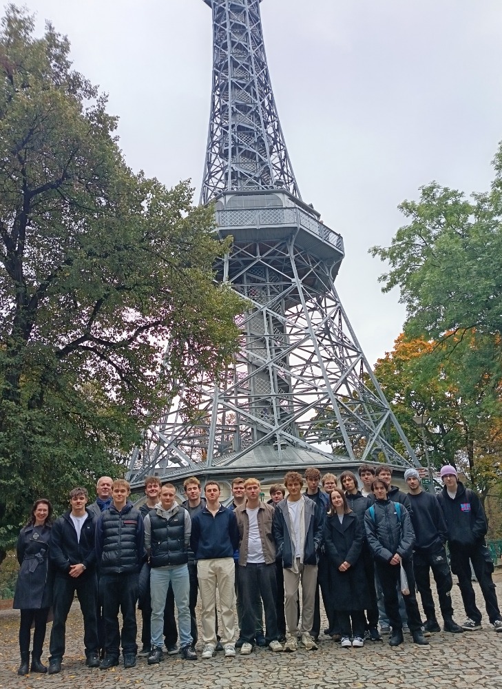 Třída 4.A vyrazila na svůj poslední školní výlet 9.-10. října 2025 do Prahy. Návštěvu hlavního města zahájila u sochy Hlava Franze Kafky a přes Národní třídu se kolem Národního divadla prošla na Petřín. Odtud její kroky směřovaly na Pražský hrad a k památníku ČS letců RAF. Zde se výkladu ujal Marek Kubalík, jehož pradědeček pan Vojtěch Kubalík mezi letci RAF dosáhl nejvyšší hodnosti v nekomisované složce.